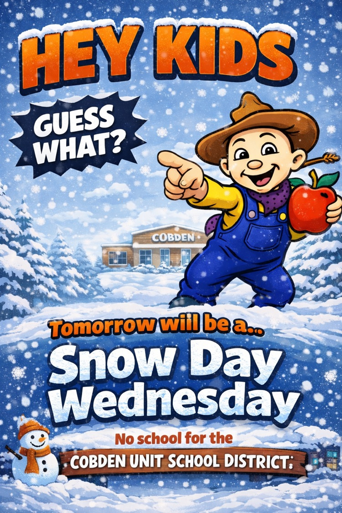 Due to continued snowy and icy road conditions, Cobden schools will be closed tomorrow, Thursday, January 29. We appreciate your patience and support and look forward to welcoming students back as soon as conditions improve.