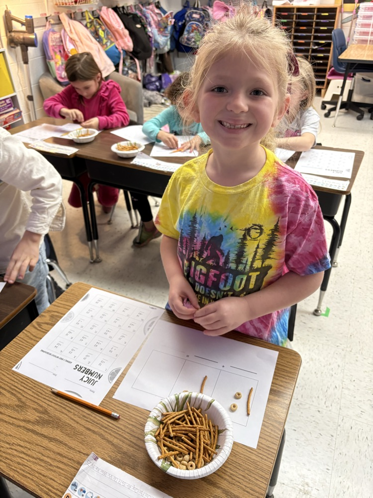 Ms. Mueller’s 1st graders made math hands-on today! 🥨